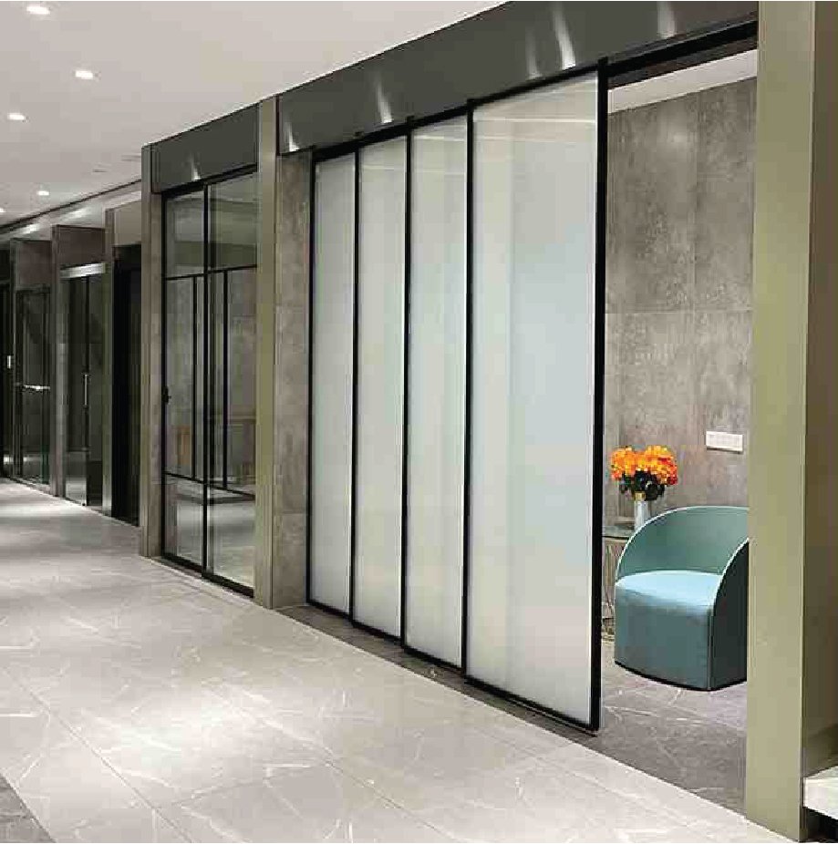 Our Telescopic and Bi-Parting System features two or more glass panels that elegantly slide horizontally along a track, eliminating the need for a bottom threshold. The term “Telescopic” denotes the panels’ ability to overlap or telescope, ensuring a fully open door with minimal clearance required. This system is a perfect choice for commercial or residential settings where a modern, sleek appearance is desired.